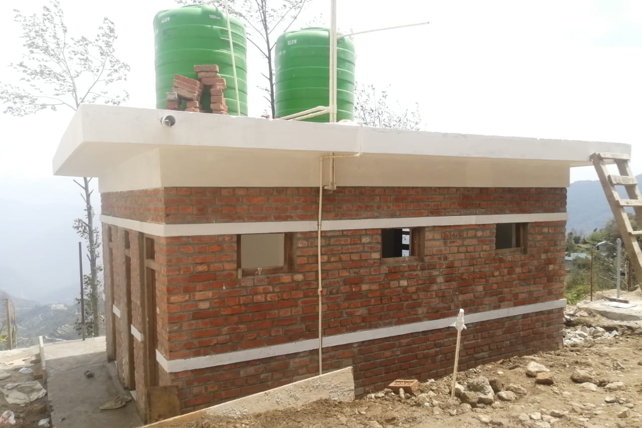 Die Wasserbehälter sind auf dem neuen Toilettengebäude installiert.