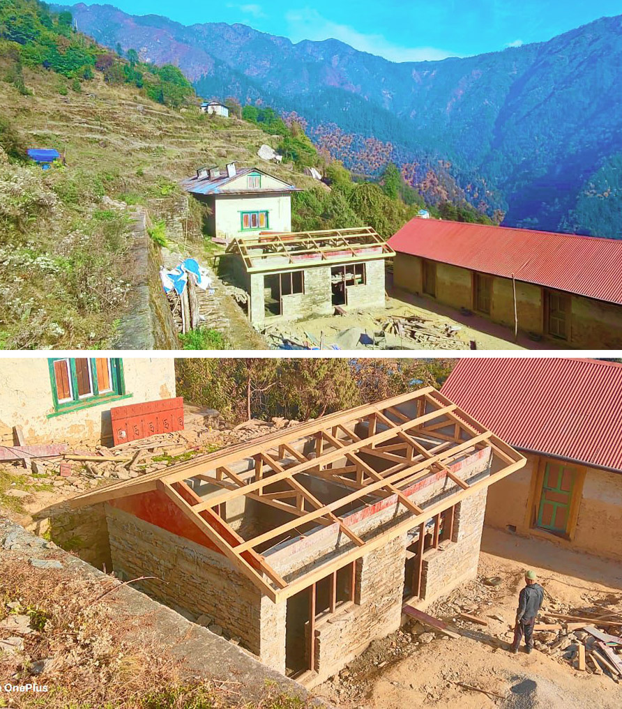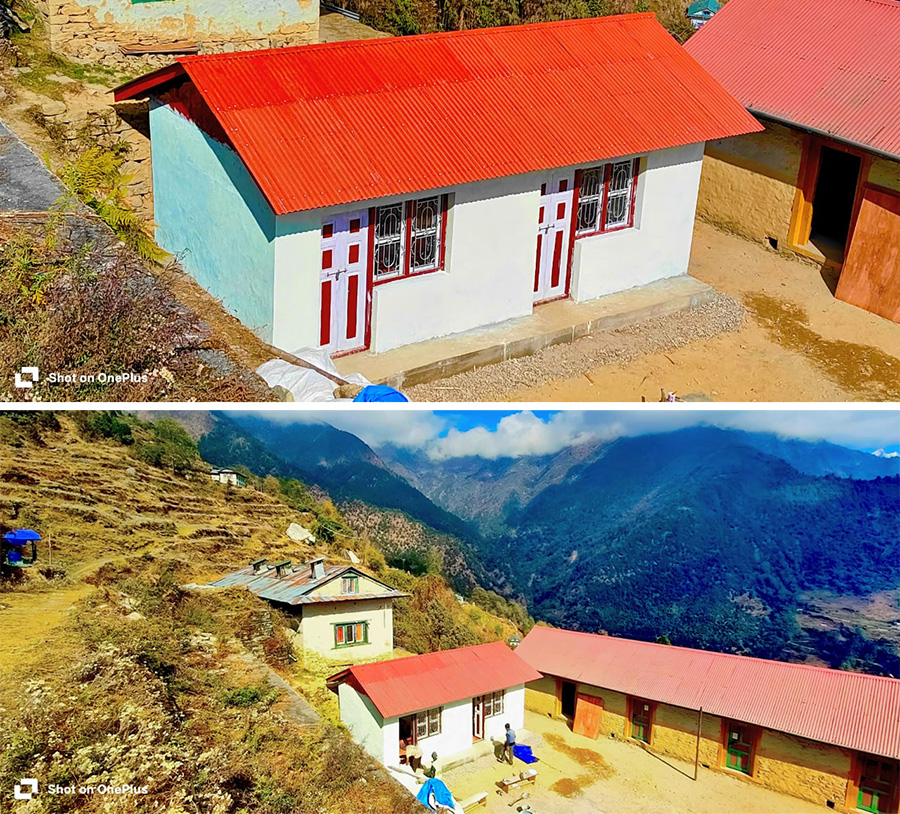 In Chhulemu/Nepal entsteht ein neues Schulgebäude mit zwei Klassenzimmern für die Baal Bikash Basic School. Seit Sommer 2025 schreitet der Bau planmäßig voran – vom Abriss über Fundament und Mauerwerk bis zur voraussichtlichen Fertigstellung noch 2025.