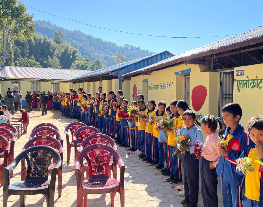 In Chhulemu/Nepal entsteht ein neues Schulgebäude mit zwei Klassenzimmern für die Baal Bikash Basic School. Seit Sommer 2025 schreitet der Bau planmäßig voran – vom Abriss über Fundament und Mauerwerk bis zur voraussichtlichen Fertigstellung noch 2025.