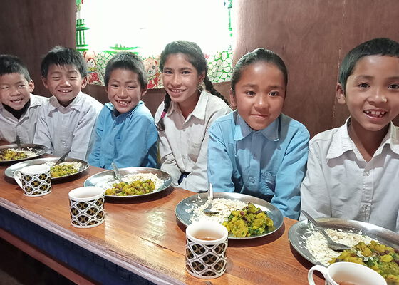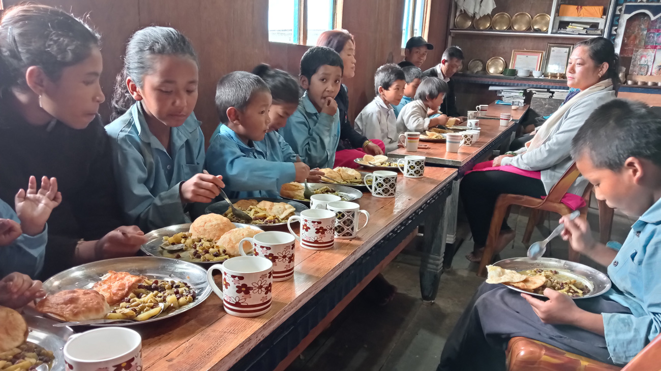 Das initiale Tagesmahlzeitenprogramm der Schule für Schüler und Lehrer begann am 16. Januar 2023 nach einer Gemeindeversammlung in der Schule, an der Vertreter der lokalen Regierung, Eltern und Gemeindemitglieder teilnahmen. Diese Initiative hat der Schulgemeinschaft erfolgreich nahrhafte Mahlzeiten zur Verfügung gestellt, die stets pünktlich geliefert wurden. Herr Phurinjee Sherpa, ein Einwohner von Hill, wurde ausgewählt und mit der Zubereitung dieser Mahlzeiten beauftragt. Das HTN-Team besuchte die Schule regelmäßig, um dem Dienstleister Feedback zur Qualität der Mahlzeiten zu geben. Das Programm hat zu einer verbesserten Anwesenheit der Schüler beigetragen und dürfte sich auch positiv auf ihre akademischen Leistungen auswirken.